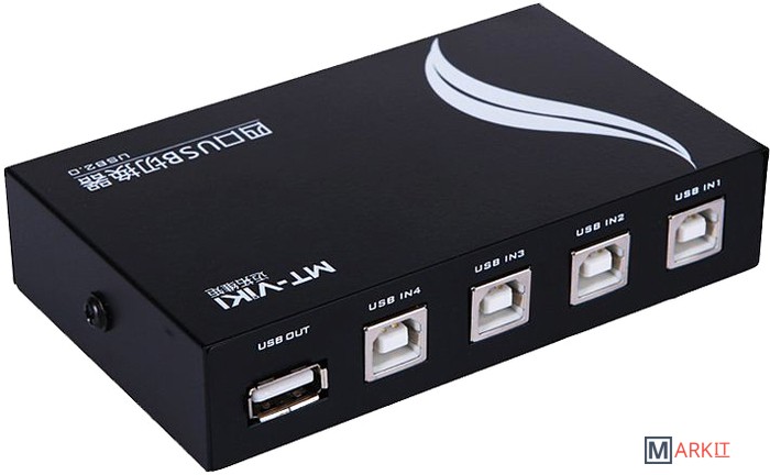 Адаптер / переключатель / свитч USB2.0 предназначен для подсоединения четырех компьютеров или ноутбуков к одному принтеру, сканеру, плоттеру, МФУ и др. устройствам.