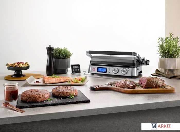 | Комплектация | • 1 плоская пластина• 1 рифленая пластина• термощуп• поддон для сбора жира• лопатка-скребок для чистки |