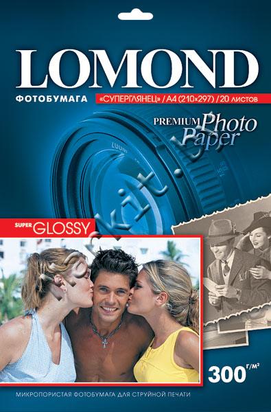 Фотобумага LOMOND серия PREMIUM PHOTO, A4, 300 гр./м2, СУПЕРГЛЯНЦЕВАЯ ЯРКО-БЕЛАЯ (SUPER GLOSSY BRIGHT), 20 листов, односторонняя микропористая, для струйной печати (1109100) Код: 3448