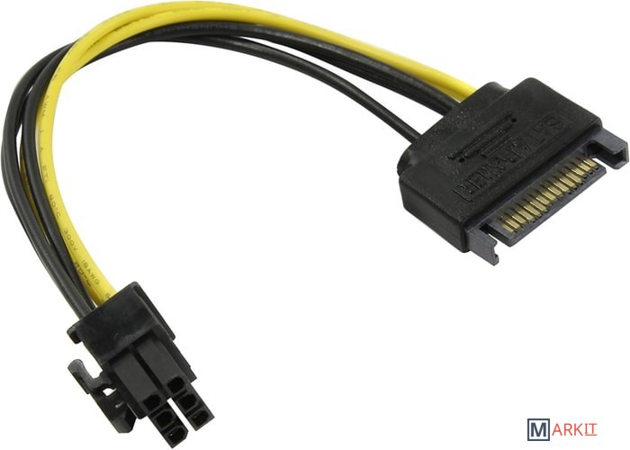 Переходник для дополнительного питания видеокарты через 6-пиновый разъем от коннектора SATA блока питания компьютера.