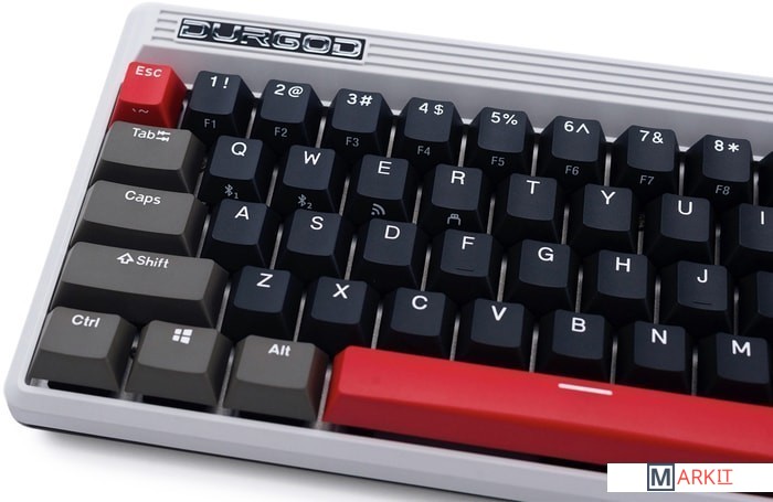 КЛАВИАТУРА БЕЗ КИРИЛЛИЦЫТип: тактильный Сила нажатия: 55 грамм (средние)Длина пути: 4 мм (2 мм до срабатывания)Помимо подключения через стандартный кабель USB клавиатура может работать в одном из двух беспроводных режимов — Bluetooth 5.0 или беспроводном соединении 2.4G, обладающем меньшей, по сравнению с Bluetooth, задержкой. Переключение между режимами осуществляется с помощью специального слайдера в верхней правой части. Благодаря беспроводному подключению вы также можете подключить клавиатуру к устройствам на iOS или Android.Два кабеля в комплекте - Вы можете использовать как USB Type-C, так и старый добрый USB Type-A.Мультимедиа и дополнительные FN функции - Клавиатура поддерживает сочетания клавиш для регулировки громкости и управления музыкой. Также имеется возможность отключить кнопку Windows.Durgod Zeus Engine позволяет создавать макросы. Можно создать свои мультимедиа, функциональные макросы и многое другое. ПО не поддерживается на Mac OS.Прочные регулируемые ножки позволят немного приподнять клавиатуру и изменить её угол наклона для более комфортной печати, а их прорезиненное дно не даст клавиатуре сдвинуться с места.Функция Full N-key Rollover по USB (NKRO) - Позволяет нажимать одновременно неограниченное количество клавиш. Для печати идеально подойдет как 6KRO, так и NKRO, независимо от вашей скорости. Для игр NKRO будет плюсом и неважно, нажимаете ли вы больше 6 кнопок или нет, поскольку, играя в любую игру, вы можете случайно нажать пару лишних клавиш и из-за этого клавиатура может не среагировать на нажатие, которые вы хотели совершить изначально. Осторожно, старые BIOS-ы могут не реагировать на клавиатуру из-за NKRO.