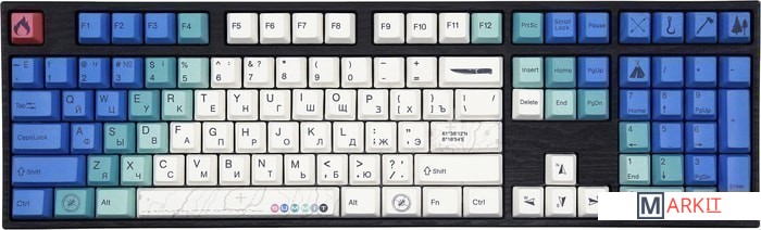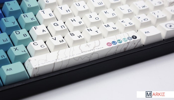 Тип: кликающийСила нажатия: 60 грамм (несмотря на вес, средние)Длина пути: 4 мм (2.2 мм до срабатывания)Summit R2 — это всё тот же старый добрый Summit, но в обновлённом дизайне и с новыми кейкапами V-Silk. Поверхность клавиш теперь гладкая и гораздо меньше притягивает грязь, оставаясь при этом такой же приятной на ощупь, но уже по-новому!В данной модели основными цветами являются брутальный, крутой и бескомпромиссный. На капах нанесены деревья, топор, палатка — все необходимое для прекрасного времяпрепровождения.Клавиатура поддерживает сочетания клавиш для регулировки громкости и управления музыкой. Также имеется возможность отключить кнопку windows и поменять клавиши Fn и Win/Ctrl и Caps Lock местами.Сочетание стабилизаторов и смазки позволяет добиться максимально равномерного и плавного хода клавиш enter/space/shift/backspace, а сами колпачки легко снять с клавиатуры.Белая подсветка - Имеется 3 разных режима (выключена, статичное свечение, эффект затухания) и 4 уровня яркости. Режимы меняются через FN + стрелка вправо, FN + стрелка вверх/вниз меняет яркость в режиме статичного свечения и скорость в режиме затухания.Все мультимедиа и дополнительные FN функции совместимы с MAC OS и работают как полагается, а поменять местами клавиши-модификаторы можно в системных настройках. Проверено с MAC OS 10.13.Функция Full N-key Rollover по USB (NKRO) - Позволяет нажимать одновременно неограниченное количество клавиш. Для печати идеально подойдет как 6KRO, так и NKRO независимо от вашей скорости. Для игр NKRO будет плюсом и неважно, нажимаете ли вы больше 6 кнопок или нет, поскольку, играя в любую игру, вы можете случайно нажать пару лишних клавиш и из-за этого клавиатура имеет шанс не среагировать на нажатие, которые вы хотели совершить изначально. Осторожно, старые BIOS-ы могут не реагировать на клавиатуру из-за NKRO.