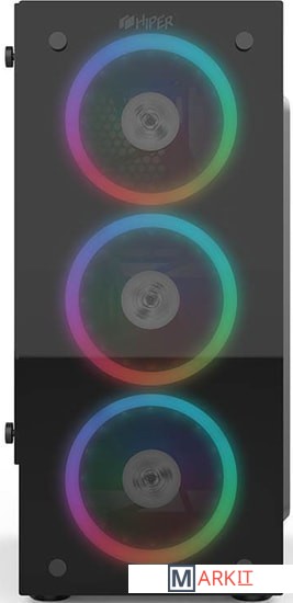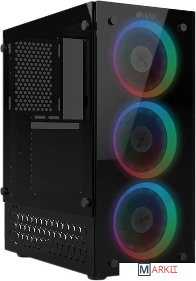 HIPER HG-C104RGB — это корпус формата Mid-Tower ATX с двумя панелями из закаленного стекла и тремя вентиляторами с подсветкой RGB