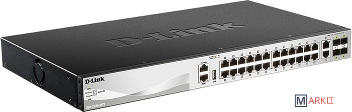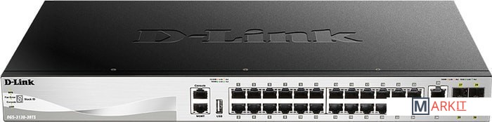 Управляемый стекируемый коммутатор 3 уровня с 24 портами 10/100/1000Base-T, 2 портами 10GBase-T и 4 портами 10GBase-X SFP+.